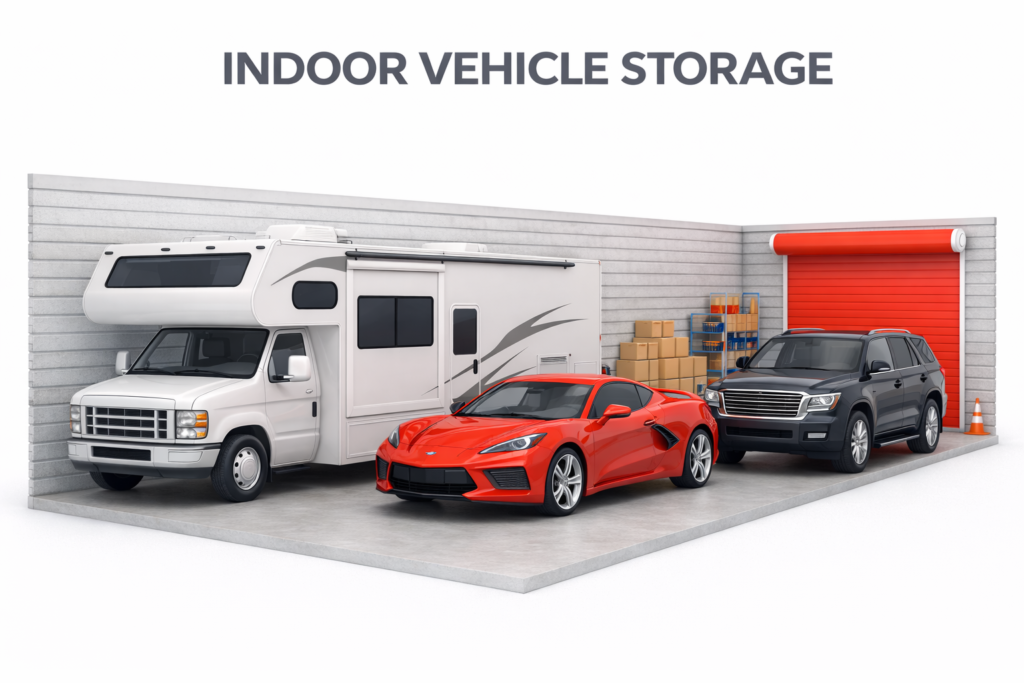Indoor storage is the best option for those looking to protect their vehicle from the elements. Whether you need to store a car, RV, or motorcycle, these indoor units offer complete coverage and security, ensuring your vehicle remains in excellent condition while in storage.